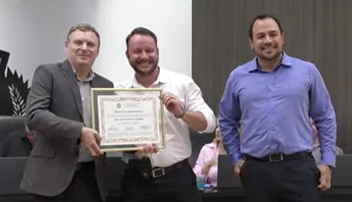 A Câmara também realizou a entrega de moção ao policial civil Éder Luiz Pereira de Andrade (foto), proposta por Escrivão Parma.