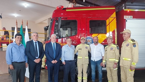 Lembra do caminhão do Corpo de Bombeiros de Campo Mourão que foi destruído por um incêndio em maio? Pois fique sabendo que nesta sexta-feira foi entregue um novo caminhão à corporação. Custou R$ 1,5 milhão. A entrega contou com a presença do secretário de Estado da Segurança Pública, coronel Hudson Teixeira, e do comandante-geral do Corpo de Bombeiros do Paraná, coronel Manoel Vasco de Figueiredo Junior. O prefeito Tauillo Tezelli também estava lá, assim com o prefeito eleito Douglas Fabrício.