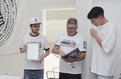 O vereador Paulo Pilatte entregou na quinta-feira, uma homenagem ao goleiro Arthur Borghi, de 16 anos. O vereador Bina também participou. Trata-se de voto de louvor inserido em Ata do Legislativo através de requerimento proposto pelo parlamentar, após Borghi assinar contrato com a equipe profissional do Corinthians. O jovem goleiro é de Campo Mourão.