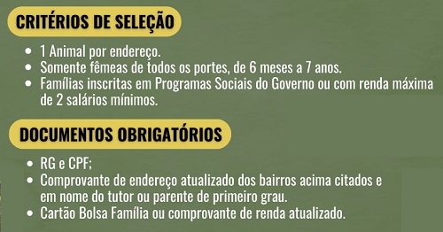 Vale só para cães e gatos de famílias que morem na Vila Guarujá, Vila Carolo e jardim Isabela.