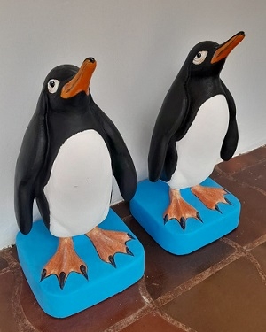 São os pinguins que por vários anos moraram no chafariz da praça Getúlio Vargas, em Campo Mourão. Foram retirados quando a praça passou por revitalização, em 2004. Desde então, os pinguins foram para o Museu Municipal. Agora, foram restaurados e estão perto da porta da entrada. Pudera. São tombados pelo patrimônio histórico, afinal, quando houve o tombamento do chafariz, em 1993, eles estavam lá...