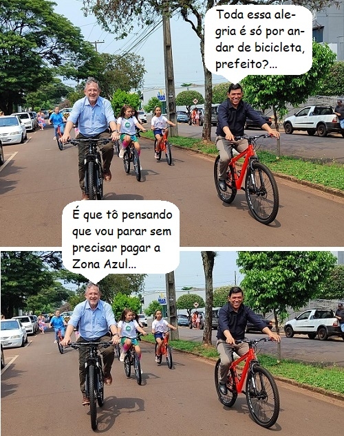 O clic é de quinta-feira, quando o Procon de Campo Mourão entregou 40 bicicletas para crianças que participaram de um concurso de redação. O diretor do órgão, Sidnei Jardim, levou uma bike de casa e incluiu no roteiro um “mini passeio ciclístico”, no qual participou ao lado do prefeito Tauillo Tezelli...