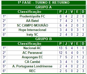O líder é o Prudentópolis, com oito, seguido do Batel, com sete.