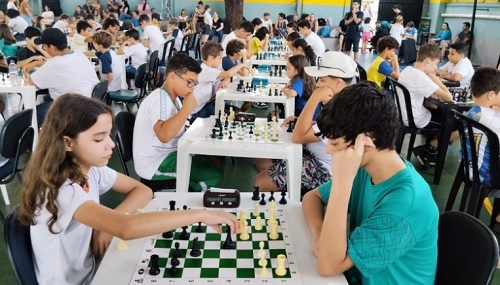 Dezenas de crianças de Campo Mourão, Peabiru e Araruna disputaram neste sábado o 1° Festival de Xadrez do Colégio Conexão. O evento foi promovido pela M&A Xadrez e pela escola e contou com o apoio da Associação Mourãoense de Xadrez. O festival incluiu ato de solidariedade e arrecadou 80 litros de água de coco que serão repassados à Santa Casa de Campo Mourão.