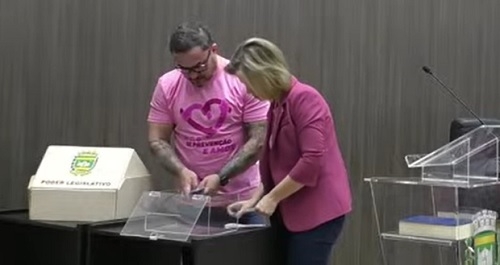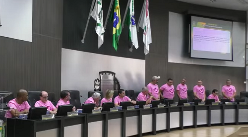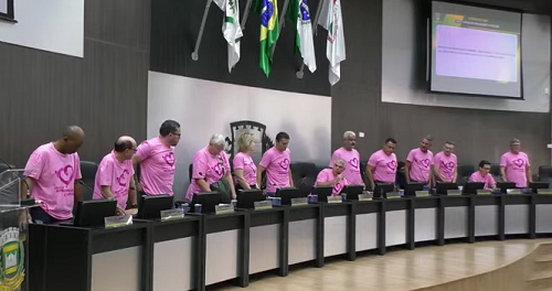Os 13 vereadores participaram da sessão desta segunda-feira usando camisetas cor-de-rosa. Foi uma referência ao Outubro Rosa. As camisetas foram repassadas pela deputada Maria Victoria.