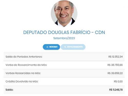 A Assembleia Legislativo disponibilizou as despesas de setembro dos deputados estaduais. Douglas Fabrício, de Campo Mourão tinha R$ 12,3 mil de sobras de meses anteriores, recebeu mais R$ 38,7 mil da cota mensal, gastou R$ 39,8 mil no mês e, assim, fechou setembro com R$ 11,2 mil no caixa.