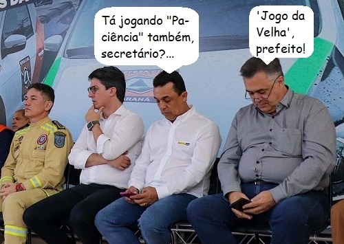 O clic é do início da semana, em Curitiba, durante evento em que o governo do Estado anunciou recursos para a Defesa Civil. O prefeito de Goioerê, Betinho Lima, estava por lá e na hora do discurso do governador Ratinho Jr foi dar uma conferiada nas mensagens. O secretário Beto Preto (Saúde) também...