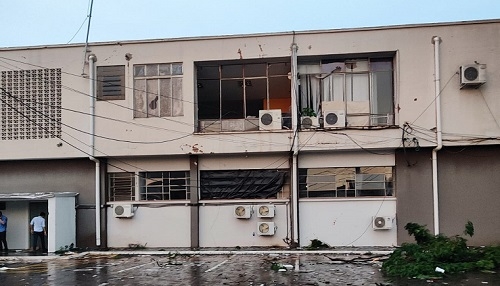 O prédio da administração também teve o telhado atingido.