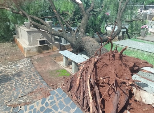 O temporal de segunda-feira derrubou cerca de 20 árvores no interior do cemitério e vários túmulos foram danificados.