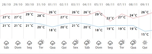 O Simepar já tinha previsto várias dias de chuva para Campo Mourão. Agora a previsão de água aumentou. O instituto está prevendo 47 mm no sábado, 62 no domingo e 75 na segunda-feira. O sol volta a aparecer só na terça, mas ainda assim chove mais 8,9 mm. A chuvarada, aliás, não para e vai pelo feriado de Finados à frente. Dia de sol, sol mesmo, somente em 9 de novembro.