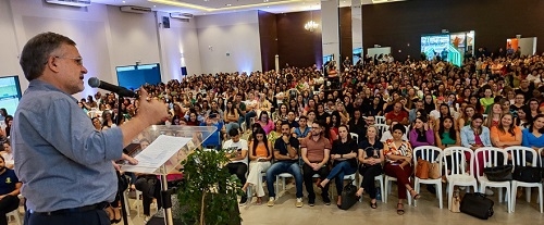 A prefeitura de Campo Mourão fez evento nesta sexta-feira para comemorar o Dia da Educação. Foi no Mourão Garden. Teve entrega de premiações a projetos pedagógicos, apresentações culturais e stand-up com o humorista Diogo Portugal. O prefeito Tauillo Tezelli participou. O deputado Douglas Fabrício também.