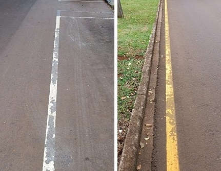 "Pinturas efetuadas na av. Jorge Walter. Perguntas que não se calam: 1) Qual tinta foi licitada e qual está sendo entregue.?2) Quem é o fiscal do contrato? 3) Cadê os vereadores para fiscalizar isso? A pintura ainda está na av. Goioerê e a Jorge Walter já necessita manutenção! Lamentável!"
