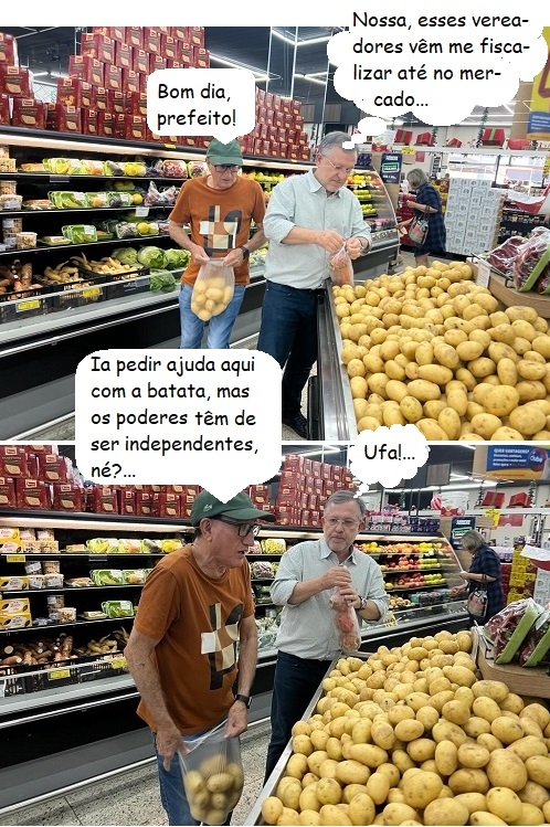 Olha só quem se encontrou em supermercado de Campo Mourão, neste sábado. O prefeito Tauillo Tezelli e o vereador Olivino Custódio foram vistos fazendo compras. Viu só, não basta ser prefeito. Nem vereador...
