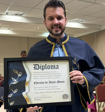 A Academia Mourãoense de Letras empossou neste sábado o novo titular da cadeira número 36. Trata-se do filósofo e teólogo Éderson de Assis Monte, de Peabiru. Com 28 anos, ele é diácono da Congregação da Sagrada Família de Bérgamo, e será ordenado padre no mês que vem. A solenidade de posse aconteceu no Paraná Palace Hotel. O novo "imortal" entrou no lugar de Dalva Helena de Medeiros, que renunciou.