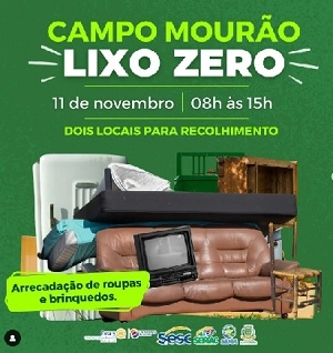 A prefeitura realiza no próximo sábado, das 8h às 15h, mais uma ação da campanha “Campo Mourão Lixo Zero”.
