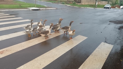 O clic é de Farol, onde a cena se tornou comum: grupo de gansos atravessa a rua pela faixa de pedestres. Quem mora por lá já sabe que é preciso esperar os gansos passarem. Eles são de uma chácara na entrada da cidade. Detalhe: a propriedade é onde mora o prefeito Oclécio Meneses.