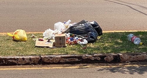 O correto não é depositar o lixo em um cesto para lixo na calçada em frente a sua residência ou comércio? Depositar lixo no canteiro central deixa a cidade feia… O flagra é na av. Manoel Mendes de Camargo.