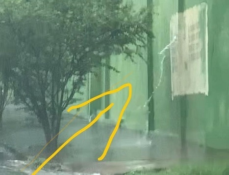 Saída de águas pluviais no Colégio Marechal Rondon. E o pedestre, passa como?...