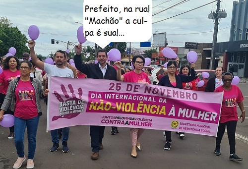 25 de novembro é o Dia Internacional da Não-Violência contra a Mulher. Para marcar a data, nesta segunda-feira a Secretaria de Assistência Social de Terra Boa promoveu ato público em frente a prefeitura. Terminou com uma caminhada até a praça da matriz. O prefeito Edmilson Moura participou com bexiga na mão e tudo...
