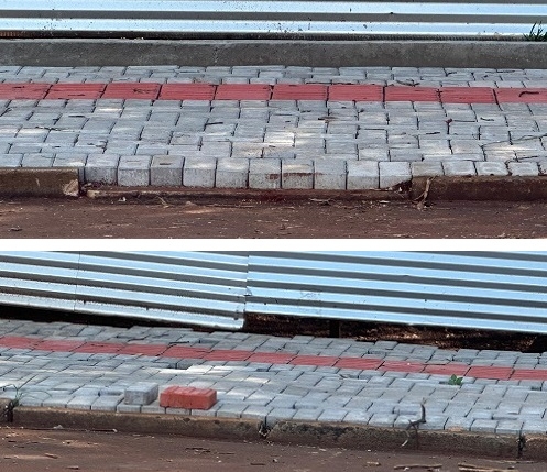 Reforma da praça do fórum. Já que não foi feita troca dos meios-fios, pelo menos podiam alinhar na hora de refazer a calçada.