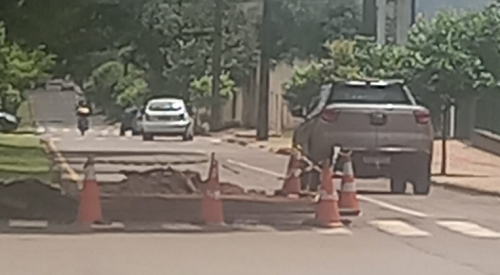 Estão construindo uma travessia elevada ao lado da Escola Gurilândia. Mas a sinalização é insuficiente. É necessária maior sinalização para não pegar o motorista desprevenido. Ele tem que chegar em cima da obra para saber que tem só metade da pista