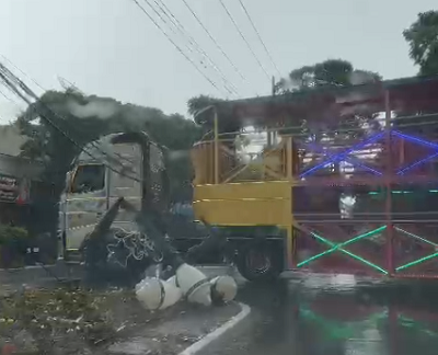 No domingo, o veículo se enroscou em fios e derrubou um poste republicano na av. Irmãos Pereira.