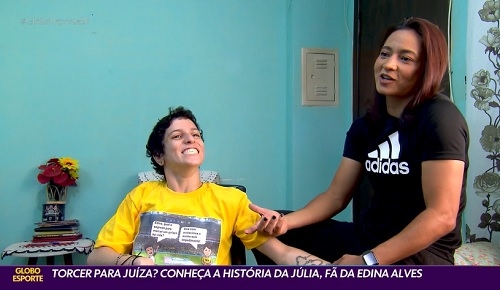 A árbitra Edina Alves Batista, de Goioerê, foi tema de reportagem do programa Globo Esporte. Motivo? Uma moradora de Guarulhos, que é fã dela. Convenhamos, ser fã de árbitro não é lá muito comum. O repórter Renato Peters contou a história da Júlia, que tem paralisia cerebral, e promoveu um emocionante encontro dela com a Édina.