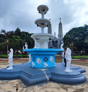 O chafariz da praça Getúlio Vargas, em Campo Mourão, está voltando a ter as cores originais. A recuperação foi possível através de pesquisa realizada no Museu Municipal. Levantamento fotográfico descobriu que desde a sua construção, em 1958, até o ano de 2004, o chafariz manteve as cores que agora estão sendo recuperadas. A obras, de 65 anos, foi construída na gestão do prefeito Roberto Brzezinski.