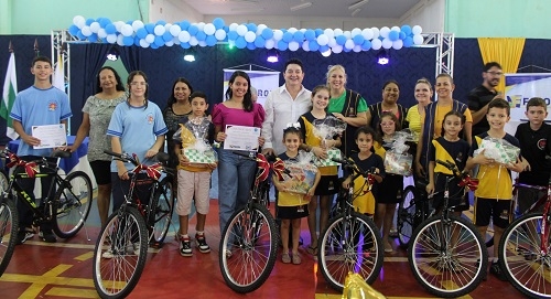 A prefeitura de Farol realizou na quinta-feira a solenidade premiação do projeto Aluno Nota 10. Foram premiados estudantes do 1º ao 9º ano do ensino fundamental e do 1º ao 3º ano do ensino médio. A premiação incluiu 11 bicicletas, 15 jogos pedagógicos e 50% de uma bolsa universitária, cujo vencedor será divulgado na colação de grau, nesta sexta-feira à noite. O prefeito Oclécio Meneses participou do evento.