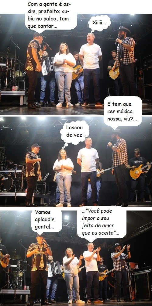 Os cliques são desta quinta-feira, quando um show com a dupla Felipe & Falcão marcou o aniversário de 71 anos de Peabiru. O prefeito Júlio Frare subiu ao palco e discursou ao lado dos cantores. A cantoria fica por conta da imaginação de Boca Santa...