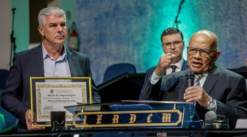 A Câmara de Campo Mourão entregou neste domingo à noite mais uma moção ao pastor José Anunciação dos Santos. Foi na igreja Assembleia de Deus. A homenagem aconteceu pelos 93 anos de vida do pastor, completados em março. A entrega foi feita pelo presidente da Câmara a autor da moção, Edilson Martins, que também faz parte da mesma igreja.