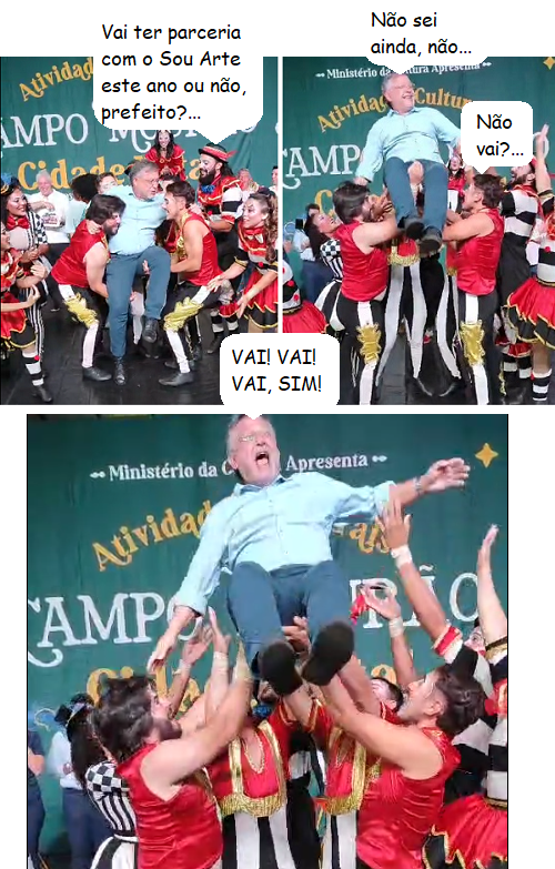 Os cliques são desta quinta-feira, quando a Associação Sou Arrte prestou contas do projeto Atividades Culturais Campo Mourão Cidade Natal 2023. O prefeito Tauillo Tezelli participou e, literalmente, foi “jogado para cima” pelo pessoal do Sou Arte.