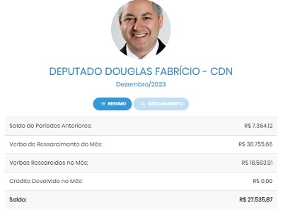 Saiu a divulgação das despesas de dezembro dos gabinetes dos 54 deputados estaduais do Paraná. De Campo Mourão, Douglas Fabrício foi econômico no último mês do ano. Usou apenas R$ 18,8 mil dos R$ 38,7 mil a que tinha direito. Resultado? Como já tinha R$ 7,3 mil sobrando de meses anteriores, encerrou 2023 com R$ 27,5 mil em caixa, dinheiro que volta para o Estado.
