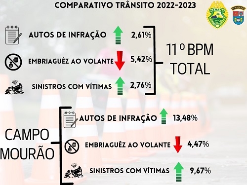 O 11º BPM divulgou o balanço do policiamento de trânsito em 2023.