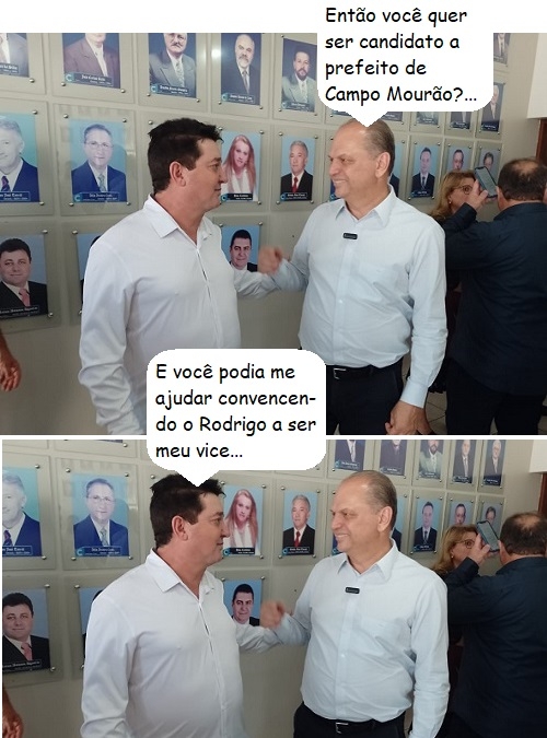 O prefeito de Farol, Oclécio Meneses, não perdeu a chance de conversar com o deputado federal Ricardo Barros durante a presença deles na Comcam, sexta-feira. Barros é o presidente estadual do PP, partido do ex-vice-prefeito Rodrigo Salvadori (Campo Mourão) e da ex-prefeita Angela Kraus (Farol). Ela é provável adversária de Oclécio caso ele vá para a reeleição. Já Salvadori é pré-candidato em Campo Mourão, onde o prefeito farolense não descarta entrar na disputa. Hummmm...