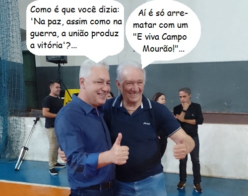 O deputado Douglas Fabrício e o ex-prefeito Nelson Tureck fizeram pose abraçados nesta quinta-feira, no ginásio do Lar Paraná. Os dois protagonizaram a mais acirrada disputa pela prefeitura de Campo Mourão, em 2004. Tureck venceu por 281 votos, lembra? Já nas eleições deste ano, pelo andar da carruagem, os dois tendem a estar do mesmo lado. Será?...
