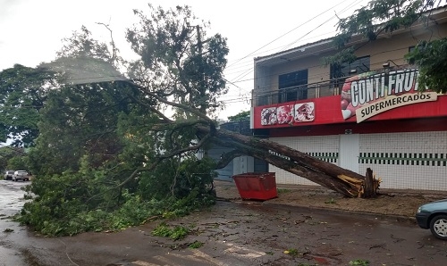 Temporal desta terça-feira derrubou várias árvores em Campo Mourão. Esta, na rua Santa Cruz.