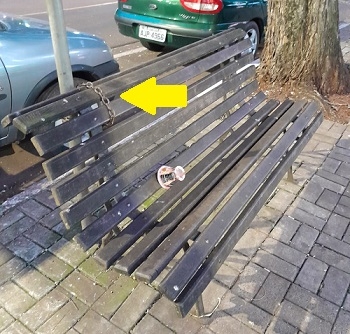 “Um banco da praça preso no calçadão com uma corrente. Pode isto?”