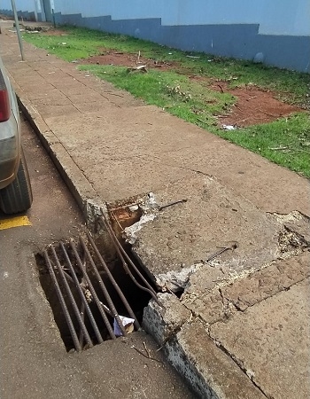 • Situação do bueiro em frente a Escola Urupês. A aulas voltam nesta segunda-feira.