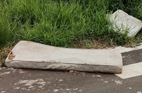Faz dias que esse colchão foi deixado na Rua dos Araçás, no jardim Botânico 2. A chuva o levou para o fim da rua.