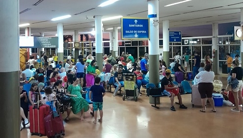 Rodoviária lotada de gente. Tem mais dois portões sem uso. O que impede de usar os outros? Aglomeração de pessoas é um risco.