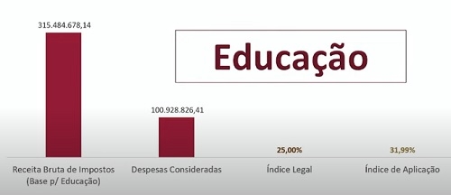 A prefeitura de Campo Mourão investiu, ano passado, 31,99% de sua receita corrente líquida na educação. Foram R$ 100,9 milhões. Ficou acima, portanto, do índice mínimo, de 25%. Na saúde, o investimento foi de 23,14% (R$ 71,2 milhões), também superando o mínimo de 15%.