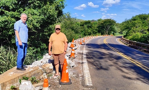 Começou, enfim, a reconstrução do guard rail da ponte sobre o rio Lontras, entre Luiziana e Iretama. Como fica numa curva na BR-487, o local foi chamado de “ponte torta”. A mureta de proteção foi destruída há cerca de três anos. O prefeito de Luiziana, Wilson Tureck, e o vice-prefeito Marcio Fin foram ao local ver os trabalhos. Pudera. Além da prefeitura e da Câmara luizianenses, a obra já tinha sido reivindicada pela Câmara de Campo Mourão e até por empresas e entidades, como Coamo e Acicam.