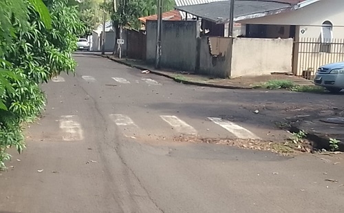 “Rua das Petúnias, no jardim Santa Nilce II. Ainda não fizeram o tapa buraco no asfalto e o mato está cobrindo a rua”.