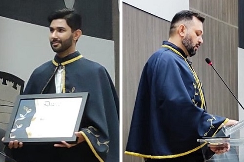 A Academia Mourãoense de Letras deu posse neste sábado ao professor Rafael Zeferino de Souza (foto, à esq.). Ele assumiu a cadeira número 26. A sessão solene aconteceu na Câmara de Vereadores. No mesmo evento foi eleita, por aclamação, a nova diretoria da AML. O professor Fábio Sexugi, de Peabiru, encabeçou a chapa única e vai voltar a presidir a entidade (foto, à dir.). Ester de Abreu Piacentini será a vice-presidente. A posse está marcada para o próximo dia 21.