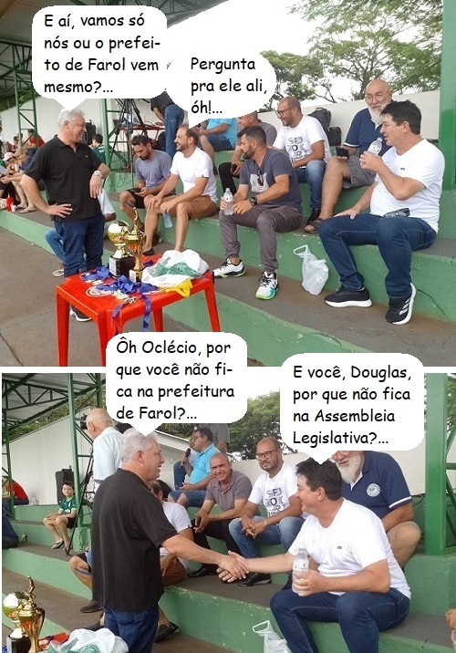 Os cliques são deste domingo, no estádio de Piquirivaí, onde aconteceu amistoso entre veteranos do Grêmio de Maringá e uma seleção de agricultores. Na arquibancada, três pré-candidatos a prefeito de Campo Mourão se encontraram – Douglas Fabrício, Rodrigo Salvadori e Oclécio Meneses.