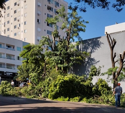 O massacre da serra elétrica passou quarta-feira pela av. João Batista Salvadori. Várias árvores foram cortadas.