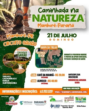 Acontece no próximo domingo a Caminhada Internacional na Natureza de Mamborê.