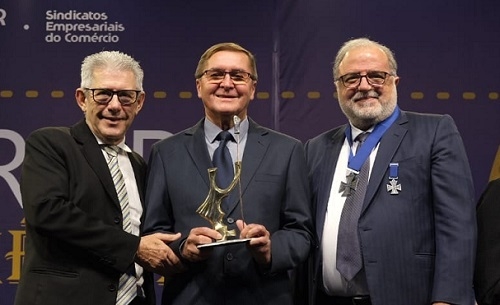 O empresário Renato Kwitschal, da KR Veículos, de Campo Mourão, recebeu no fim de semana, o Troféu Guerreiro do Comércio do Paraná. Foi em Curitiba, durante evento anual da Fecomércio que comemora o Dia do Comerciante (16 de julho). Kwitschal representou o Sindicato Empresarial do Comércio de Campo Mourão e Região.