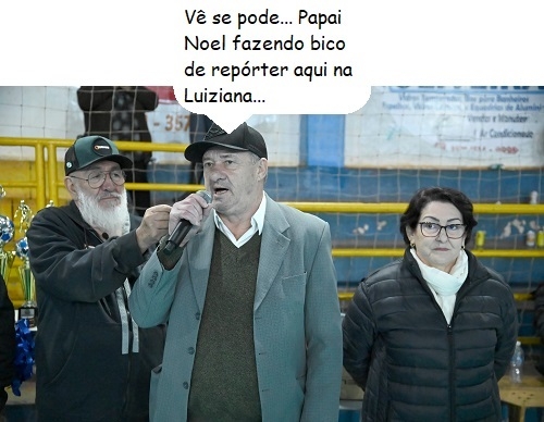 O clic é de Luiziana, onde foi disputada na quarta-feira a final do Campeonato Municipal de Futsal. O prefeito Wilson Tureck participou da solenidade de premiação com direito a discurso e tudo. E que fique claro: o “Papai Noel” é o comunicador João Nereu, de Campo Mourão.